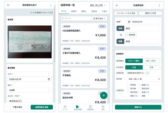 立替経費精算、交通費精算などの基本機能に加え、建設業で発生しやすい材料費や外注費の他、工事の運営や管理に必要な費用といった要素を工事コードごとに紐付けることが可能です。建設業経理士の資格を持つ専門チームの知見を反映し、小口現金管理にも対応するなど現場での使いやすさを重視して設計しています。