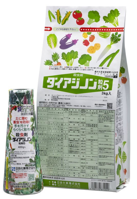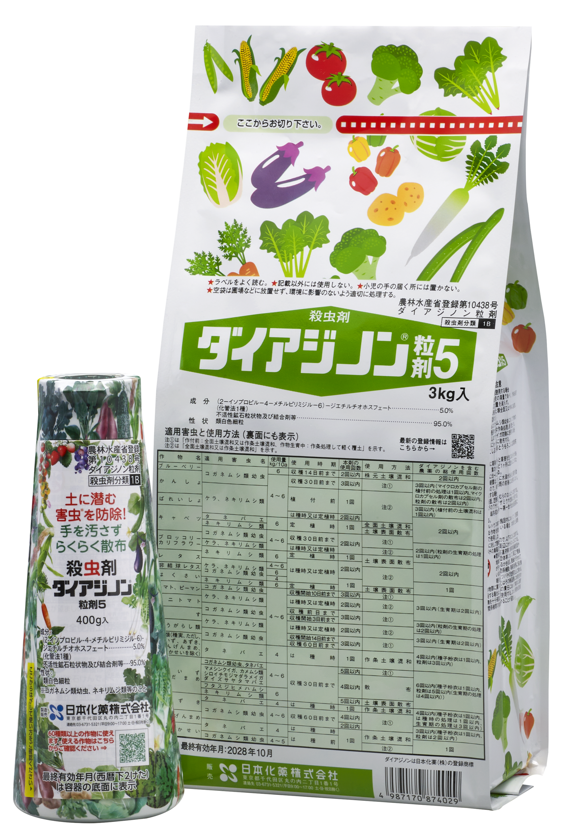 「ダイアジノン粒剤5」は、1969年に農薬登録を取得して以来、半世紀以上にわたって日本全国で親しまれている“畑の常備薬”です。