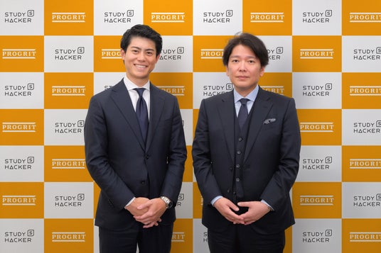 左:株式会社プログリット 代表取締役社長 岡田 祥吾、右:株式会社スタディーハッカー 代表取締役社長 岡 健作