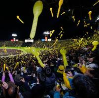 甲子園ジェット風船復活 名物応援、7年ぶり再開 2026年4月7日 20:39 7回の攻撃前にジェット風船を飛ばす阪神ファン。7年ぶりの再開となった=甲子園 阪神の七回裏攻撃前の演出「ラッキーセブンのジェット風船」が7日、今季の甲子園球場初戦となったヤクルト戦で再開された。新型コロナウイルスの影響で2020年シーズンから中止となっていた名物応援。4万2610人が詰めかけたスタンドから黄色の風船が夜空に舞い上がった。 球団は昨年のオープン戦などで実施した実証実験や意見集約を経て7年ぶりの再開を決定。飛沫対策として専用ポンプで膨らませる球団指定の風船のみ使用できる。 トップ 全国のニュース 甲子園ジェット風船復活 関連記事 山中菫、世界王者返り咲き NY円、159円台後半 インドの警察官9人に死刑 米メタとグーグルを調査 阪神の才木が16奪三振 オ3―1ロ(7日) おすすめ記事 「岐阜の二刀流」中京・鈴木悠悟がU18候補合宿で存在感 「投打ともいいアピール」 【ぎふ高校野球】 東白川村長選、新人2人が立候補 高山市の国天然記念物・臥龍桜が見頃に 御嶽山、国定公園指定が決定