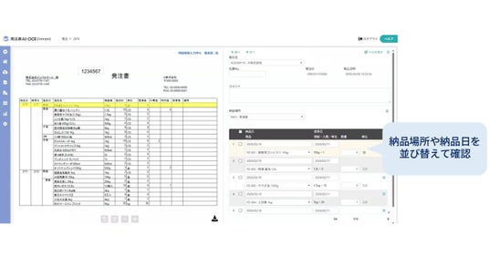 給食業界をはじめとする複雑な発注書を柔軟に読み取り、工数や処理時間を大幅に削減