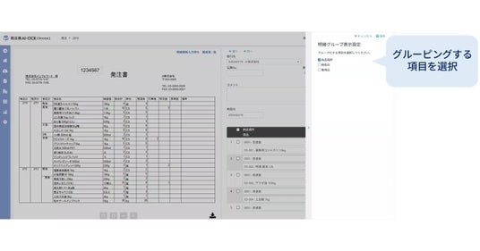 取引先から受け取った発注書の明細部分を表示する際に、納品場所や納品日ごとに並び替えて確認できるようになります。横長の表も縦方向にグルーピングして確認できるため、受注担当者による目視確認の負担を軽減できます。