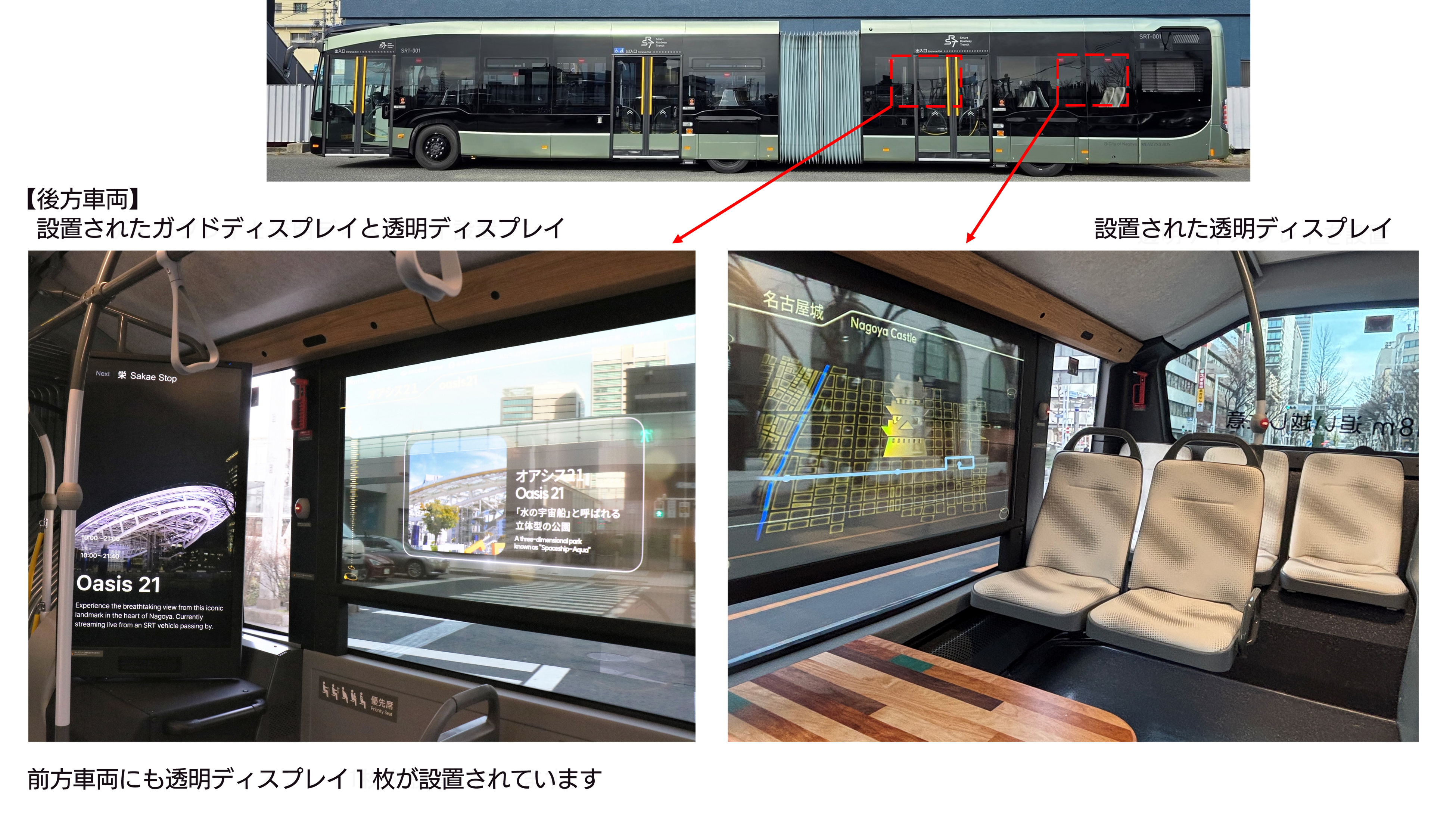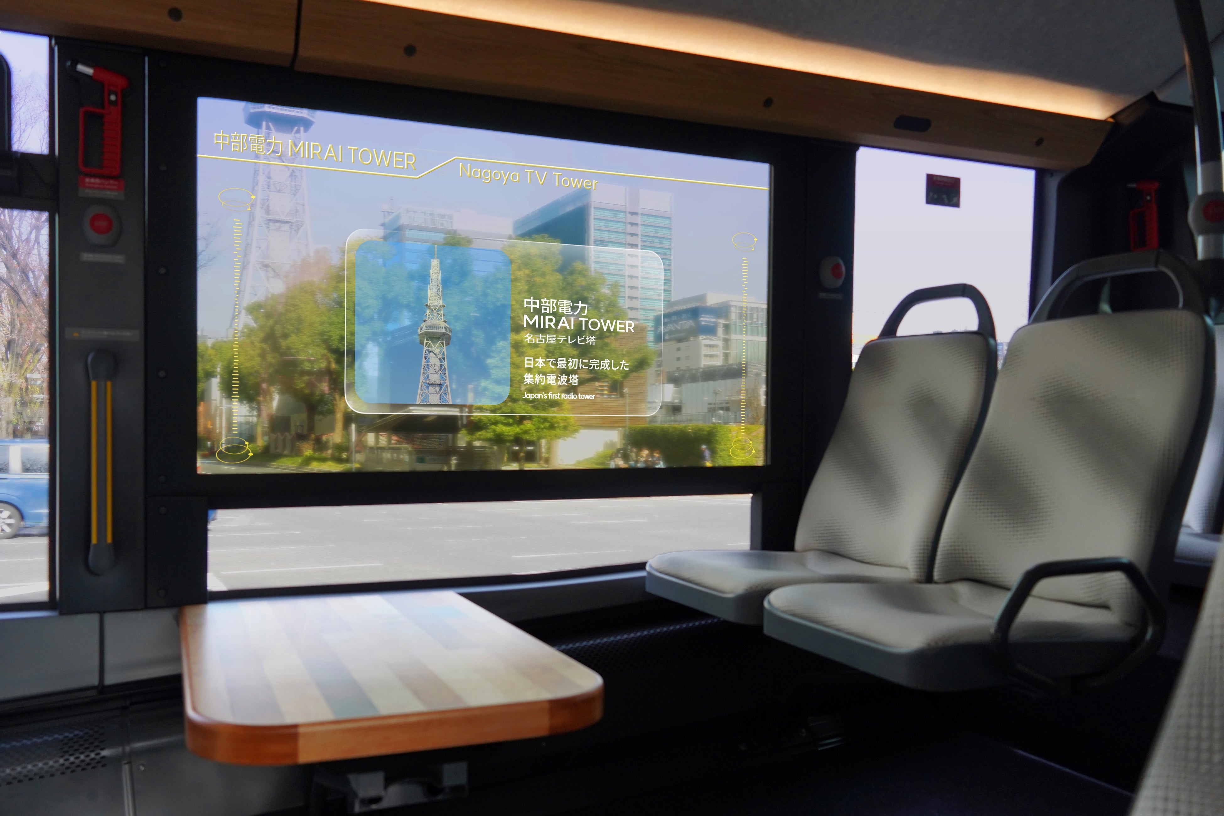 車内では映像コンテンツでまちの情報を発信するなど、新たな移動体験を提供します。