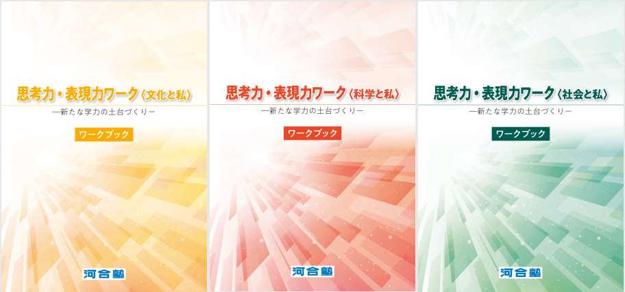 入試で重要とされる「思考力・表現力」を育成・測定する「思考力・表現力シリーズ」の入門編となる商品です。思考力・表現力を「知識活用力」「読解力」「発想力」「構成力」「表現技術」の5つのabilityとして定式化し「文化と私」「社会と私」「科学と私」の3つのテーマからひとつを選び、ワークを進めます。「書く」力の根底となる、事象を「読み取り」、「考える」力を伸ばす教材として、先生方のご支持をいただく人気シリーズです。