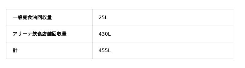 また、ホームゲーム会場であるIGアリーナ運営会社の株式会社愛知国際アリーナ 様、オフィシャルパートナー企業のエームサービス株式会社 様とともに、同日期間内にアリーナ飲食店舗で出た廃食油回収も実施いたしました。