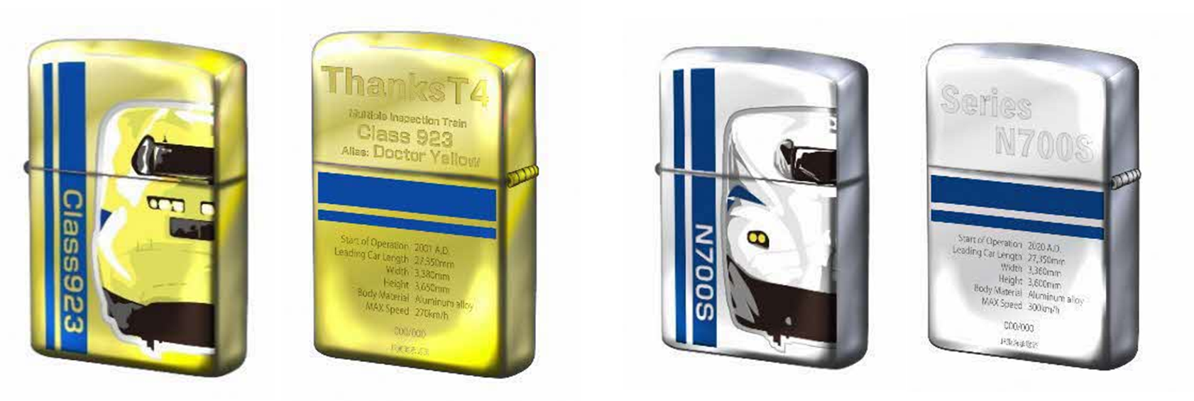 923形ドクターイエローZIPPOライター完成イメージ(左) N700S ZIPPOライター完成イメージ(右)