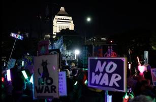 平和憲法の維持を求める市民団体が8日、国会前で集会を開催した。同様のイベントや街頭でのスタンディングも全国各地で行われた。参加者らは米国とイランについて「停戦より終戦を」と訴え、ペンライトを振って平和を祈願した。