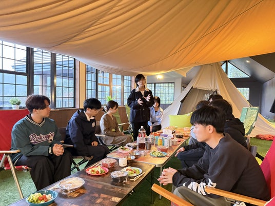 2日目には、「キャンプ場の売上を1.5倍にする新規企画を考える」をテーマにグループワークを実施。