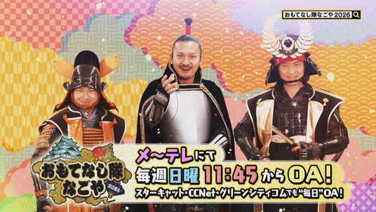 名古屋にゆかりのある武将6人と陣笠隊の4人で編成する名古屋おもてなし武将隊は、全国に武将ブームを起こした大人気の観光PR部隊。メ~テレ(名古屋テレビ放送)にて、4月12日(日)午前11時45分から、毎週日曜日に放送します。