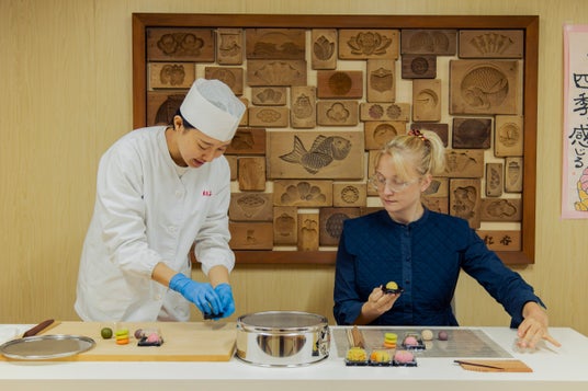 神宮のお膝元で和菓子をつくる伊勢神宮の外宮には、食物・住居・産業の神である豊受大御神が祀られ、内宮の天照大御神の衣食住を守護しています。神道において食は古来より神聖な意味を持ち、米をはじめ、旬の果物や海産物、鰹節、そして繊細に仕上げられた和菓子までもが神前に供えられてきました。伊勢神宮外宮からわずか数分の場所にあるこの和菓子店は、3代にわたり伊勢の地で菓子づくりを続けています。東海道を行き交う参拝者を迎え入れてきた伊勢の菓子文化の系譜を受け継ぐ3代目職人のもとで、3種類の和菓子づくりに挑戦し、自ら点てた抹茶とともに味わうプログラムです。