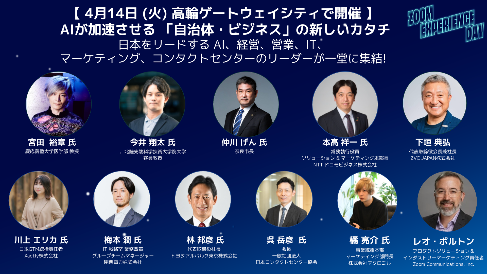 「Zoom Experience Day 2026」は、ZVC JAPAN株式会社が主催するリアルイベントです。「コミュニケーションが社会インフラに - AIが会話を行動へ導く」をテーマに開催されます。当日は、奈良市長をはじめ、自治体や民間企業の関係者が登壇し、AI時代におけるコミュニケーションの在り方や、その社会・ビジネスへの影響について議論が行われます。