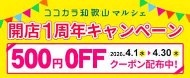 なお、「ココ・カラ。和歌山マルシェ」では、開業1周年キャンペーンを開催中で、4月30日までの期間中、先着2,000名様に「ココ・カラ。和歌山マルシェ」で使用できる500円の割引クーポンをプレゼントしております。