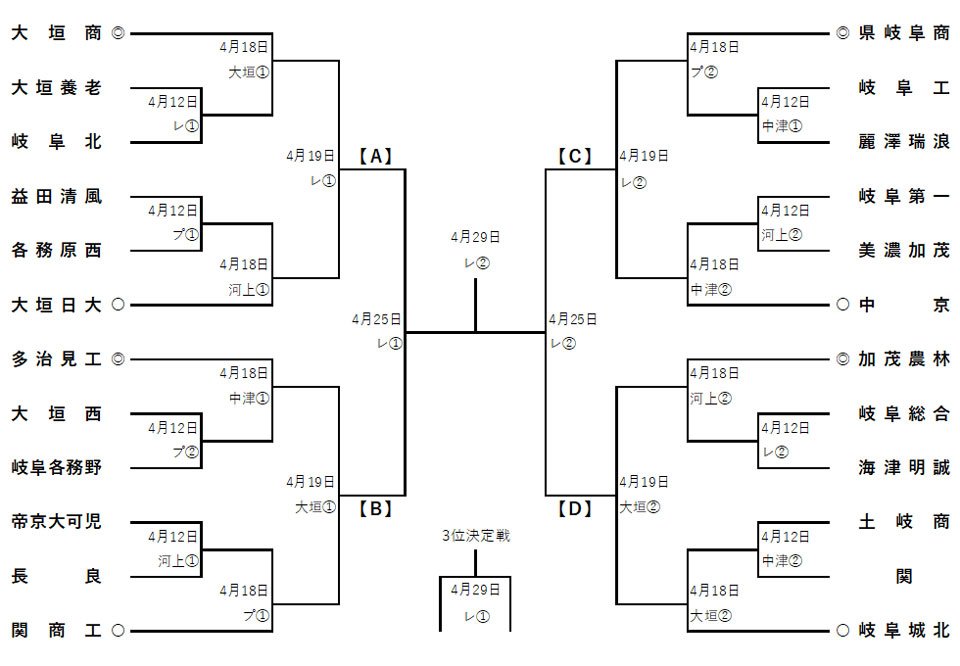 3強の中京、県岐阜商が同一ブロックに―。第73回春季東海地区高校野球岐阜県大会(12日から大野レインボーほか)の組み合わせ抽選会が9日、各務原市内で行われた。例年になくレベルが高い好投手がひしめく今年の岐阜県。中でも選抜ベスト16の大垣日大(昨秋1位)と中京(同2位)、県岐阜商(岐阜1位)が軸になるが、中京と県岐阜商が互いに初戦を突破すれば準々決勝で対戦する同じCブロックに入った。両校は県岐阜商が初戦敗退したため対戦はなかったが、昨秋も同一ブロック。昨春も準々決勝で対戦し、中京・鈴木悠悟と県岐阜商・柴田蒼亮の両エースが投げ合い、4―3で鈴木に軍配が上がった。だが、1年を経て、鈴木は先日のU-18代表候補合宿で一躍注目を浴び、柴田は昨夏の甲子園ベスト4になるなど格段の進化をしているだけに、まれにみるハイレベルな投手戦が予想される。V争いはこの勝者と大垣日大の激突になりそう。順調に日程が進めば、決勝は29日に大野レインボー。上位2校が5月23日からの東海大会(岡崎レッドダイヤモンドほか)に出場。ベスト4は今夏の岐阜大会の第1シード、ベスト8は第2シードを獲得する。(岐阜新聞デジタル独自記事です)