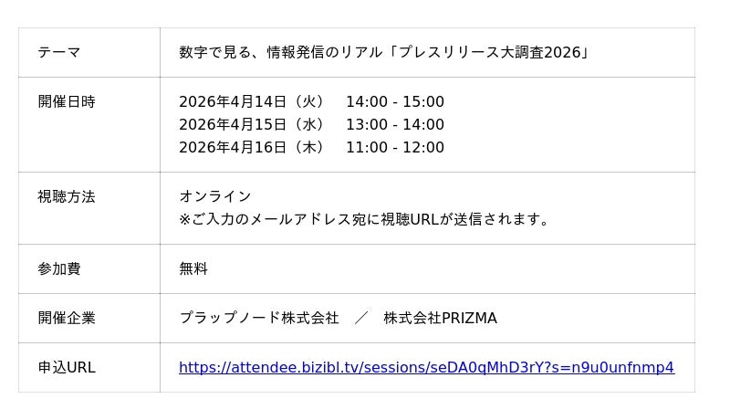 本ウェビナーでは、2025年に発信された膨大なプレスリリースデータをもとに「読まれる・掲載されるリリースの共通点」を徹底解説。