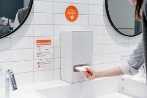 法人向けに25年夏に発売した「トドクト」はトイレに設置し、利用者が手をかざすとナプキンが1枚取り出せる仕組み。稼働後に一定時間の取り出し制限を設けて大量の持ち出しを防ぐほか、在庫状況を管理者に通知する機能がある。