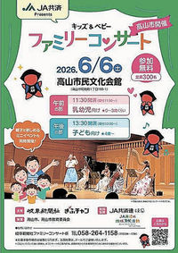 親子でコンサート楽しもう 高山市で6月、無料招待 2026年4月11日 05:00 ファミリーコンサートのチラシ 親子参加型のコンサート「キッズ&... 残り363文字(全文:380文字) この記事をお読みいただくには「デジタルプラン」または「宅配+デジタルプラン」の会員登録が必要です。無料会員の方はログインしてマイページからコース変更してください。デジタルプランまたは宅配+デジタルプランをご登録中の方はログインしてください。 岐阜新聞デジタル会員に登録すると 無料会員向け記事が読める ニュースレターで最新情報が受け取れる デジタルプラン、宅配+デジタルプランなら Webオリジナルコンテンツが読める 紙面ビューアが読める チケットの先行発売に参加できる お得なクーポンが使える 新規登録ページ ログインページ トップ 岐阜のニュース 親子でコンサート楽しもう 高山市で6月、無料招待 関連記事 郡上市のスキー場、入場100万人を維持 競技人口減少する中、幅広いニーズに対応 サッカー U-20日本女子W杯出場権獲得 アジア杯4強 ゴルフ 安田ら2位 スタジオアリス女子 松山16位浮上 マスターズ第2R 明治安田J1百年構想リーグ第10節 名古屋敗れる きょうのスポーツ おすすめ記事 【森嶋ルポ】走る、走る、カラー全開で、岐阜第一神前監督が初陣飾る 春季岐阜県大会開幕 帝京大可児は大逆転で2回戦へ【ぎふ高校野球】 【選挙速報】東白川村長選、桂川憲生氏が初当選 岐阜市で山林火災 倒木が電線に接触 郡上市のスキー場、入場100万人を維持 競技人口減少する中、幅広いニーズに対応