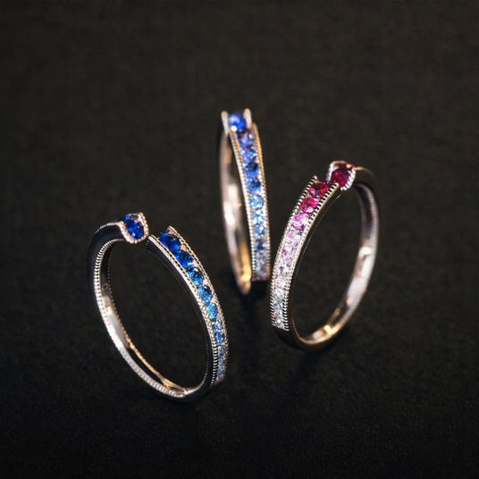 これまでダイヤモンドでご紹介してきたフォークリングに、華やかなカラーストーンを留めた新たなバリエーションが加わりました。