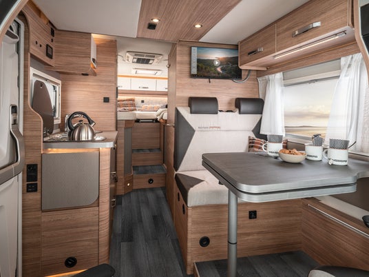 乗車定員4名・最大就寝人数5名で、約7mのボディながら取り回しに優れ、長距離移動も快適にこなせる安定した走行性能と高い安全性を備えています。