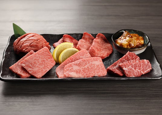 でご提供する「7種盛り合わせ」です。極上のヒレステーキをはじめ、ダイヤモンドタンや稀少部位など、自社牧場で繁殖から肥育まで一貫して育てた黒毛和牛「下村牛」を贅沢に盛り込みました。牧場直営ならではの鮮度と品質で、ここでしか味わえない一皿に仕上げています。さらに、少人数でも気軽に楽しめる「ペアセット」や、ディナータイム限定でビール・ハイボールを含む30種類以上のドリンクが楽しめる「90分飲み放題(980円)」もご用意。ご家族やご友人とのお食事はもちろん、各種お集まりにも最適です。