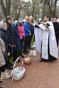 2022年2月の侵攻開始後、戦時下の復活祭は5度目。ロシア軍の攻撃で外壁が損傷したことのある首都キーウの聖ソフィア大聖堂には、市民が伝統のパン「パスカ」を詰めたかごを手に集まり、聖職者から聖水をかけられて祝福された。