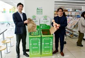 コンビニ大手ファミリーマートと中古品店「ブックオフ」を展開するブックオフグループホールディングスは13日、中古の衣料品や雑貨の回収ボックスを東京都内のファミマ約30店舗に設置する実証実験を始めた。廃棄を少なくするほか、ファミマは、買い物ついでに中古品を手放せる利点を来店客の増加につなげる。