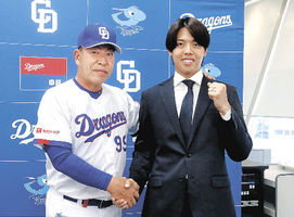 ハム杉浦 竜に加入 金銭トレード 2026年4月14日 05:00 井上監督(左)と写真に納まる中日・杉浦=13日、バンテリンドーム 金銭トレードで日本ハムから中日に... 残り486文字(全文:503文字) この記事をお読みいただくには「デジタルプラン」または「宅配+デジタルプラン」の会員登録が必要です。無料会員の方はログインしてマイページからコース変更してください。デジタルプランまたは宅配+デジタルプランをご登録中の方はログインしてください。 岐阜新聞デジタル会員に登録すると 無料会員向け記事が読める ニュースレターで最新情報が受け取れる デジタルプラン、宅配+デジタルプランなら Webオリジナルコンテンツが読める 紙面ビューアが読める チケットの先行発売に参加できる お得なクーポンが使える 新規登録ページ ログインページ トップ 岐阜のニュース ハム杉浦 竜に加入 金銭トレード 関連記事 フィギュアスケート 鍵山、来季休養 「自分見つめ直す」 ★ベンチ殴り骨折、杉山抹消 プロ野球 今節の日程 ◇パ・リーグ公示(12日) ◇セ・リーグ公示(12日) タカ、ハムに5連勝 おすすめ記事 春の高山祭開幕【写真グラフ】 からくり奉納、観光客が妙技楽しむ 自転車「青切符」制度周知や安全運転呼びかけ 岐阜県警、県内初の摘発 【独自】産廃処分場計画の庄川上流部、飛騨で富山湾の鮎放流へ 両県の漁協結束 岐阜県図書館にモーニングサービス提供のカフェ 4月15日オープン