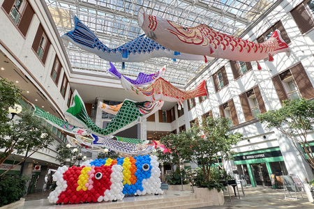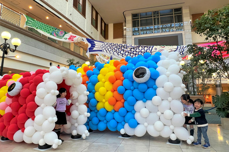 北モールステージでは、バルーンによる鯉のぼりトンネルを設置し、体験型フォトスポットとして展開しています。トンネル状に連なる鯉のぼりは迫力ある空間を生み出し、くぐって遊んだり、家族で写真撮影を楽しめる場として来場者に好評です。屋内で完結するため天候に左右されず、安心して楽しめる点も特徴であり、来場者からは「迫力がある」「子どもが楽しめる」「天候を気にせず過ごせる」といった声が寄せられています。