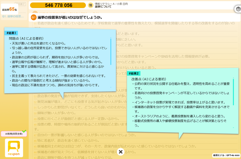 本格稼働が始まったrespon LIVE-AI。教室で受講生の自由記入を分析します