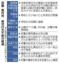 山林の遺体は不明男児 死因不詳 3月下旬 死亡か 京都・南丹市 2026年4月15日 05:00 遺体発見現場付近を調べる京都府警の捜査員ら=14日午前10時2分、京都府南丹市(共同通信社ヘリから) 安達結希さん(京都府警提供) 京都府警は14日、京都府南丹市の... 残り1193文字(全文:1210文字) この記事をお読みいただくには「デジタルプラン」または「宅配+デジタルプラン」の会員登録が必要です。無料会員の方はログインしてマイページからコース変更してください。デジタルプランまたは宅配+デジタルプランをご登録中の方はログインしてください。 岐阜新聞デジタル会員に登録すると 無料会員向け記事が読める ニュースレターで最新情報が受け取れる デジタルプラン、宅配+デジタルプランなら Webオリジナルコンテンツが読める 紙面ビューアが読める チケットの先行発売に参加できる お得なクーポンが使える 新規登録ページ ログインページ トップ 岐阜のニュース 山林の遺体は不明男児 死因不詳 3月下旬 死亡か 京都・南丹市 関連記事 岐阜県での1人暮らし「月27万円必要」 若者の生計費県労連調査 ヒダミノ 午後6時~ 「まだ11歳」住民悲しみ 自転車の88歳はねられ死亡 羽島市の県道 「青切符」県内初摘発 岐阜市内で一時停止せず 共助の心、次代へ 熊本「前震」10年、遺族ら追悼 おすすめ記事 春の高山祭開幕【写真グラフ】 からくり奉納、観光客が妙技楽しむ 自転車「青切符」制度周知や安全運転呼びかけ 岐阜県警、県内初の摘発 【独自】産廃処分場計画の庄川上流部、飛騨で富山湾の鮎放流へ 両県の漁協結束 岐阜県図書館にモーニングサービス提供のカフェ 4月15日オープン