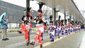 春の高山祭(日枝神社例祭)2日目を迎えた15日、高山市内の各地で祭りが営まれ、あいにくの雨となったが、町には祭りの音が鳴り響いた。