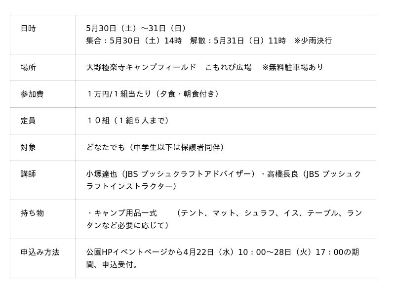 大野極楽寺公園キャンプ場 プレオープン企画「初めてのキャンプ体験会」