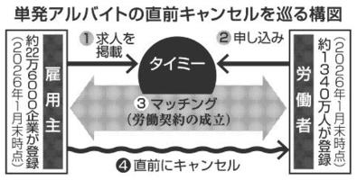 単発バイト、直前にキャンセル「不当」 労働者9人、タイミー提訴へ 東京地裁 未払い賃金を請求 2026年4月16日 05:00 短時間・単発アルバイトの「スポッ... 残り742文字(全文:759文字) この記事をお読みいただくには「デジタルプラン」または「宅配+デジタルプラン」の会員登録が必要です。無料会員の方はログインしてマイページからコース変更してください。デジタルプランまたは宅配+デジタルプランをご登録中の方はログインしてください。 岐阜新聞デジタル会員に登録すると 無料会員向け記事が読める ニュースレターで最新情報が受け取れる デジタルプラン、宅配+デジタルプランなら Webオリジナルコンテンツが読める 紙面ビューアが読める チケットの先行発売に参加できる お得なクーポンが使える 新規登録ページ ログインページ トップ 岐阜のニュース 単発バイト、直前にキャンセル「不当」 労働者9人、タイミー提訴へ 東京地裁 未払い賃金を請求 関連記事 人手不足の対応策「働きやすい環境整備」が最多 休日増や残業時間を削減 岐阜県内企業、人手「足りない」8割 岐阜新聞社アンケート 下呂市小坂町でハナモモの花見頃 遊歩道を彩る 福島正則の書状、関ケ原古戦場記念館で公開 「猪武者」は何に気配り 白川町と東白川村の全路線を廃止へ 濃飛バス、来年3月末 体操 15歳の西山が女子予選首位 全日本選手権開幕 おすすめ記事 藤井孝男さん死去 元運輸相、元自民党岐阜県連会長、総裁選にも出馬 高い調整力、信念貫く 岐阜県内のインフラ整備に尽力 藤井孝男さん死去 FC岐阜の礎築く 今西和男さん死去 荘川桜、早くも満開に 高山市の御母衣湖沿い、観光客和ます