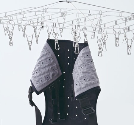 中綿を使用せず水を含ませる当社独自の構造を採用しているため、乾きにくく臭いが出る問題を解消しています。ファスナーをあけて逆さにすることで水を排出できるため、数時間で乾きます。フックにかけられる便利なループも付いており、手軽にお手入れが可能です。