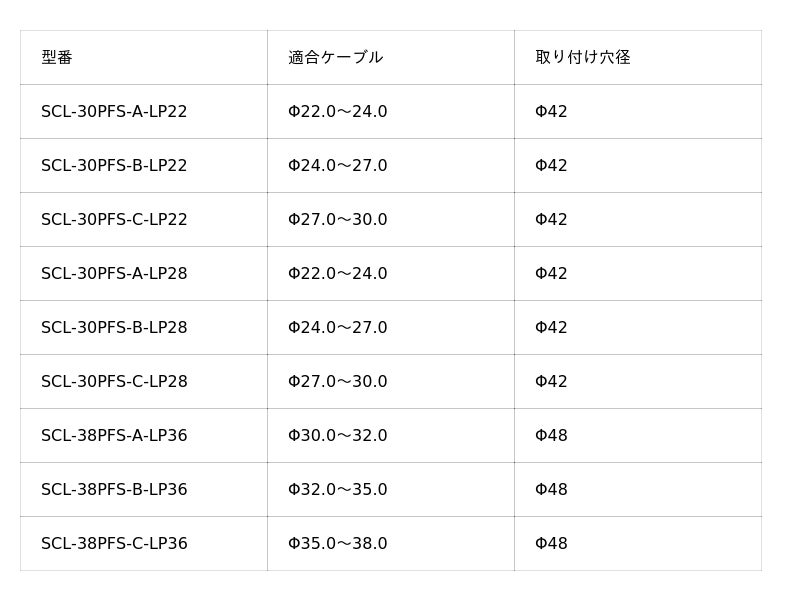 ・当社ケーブルグランド「エスシーロック」をベースにすることで、PF管(PFS22、PFS28、PFS36)に直接接続が可能