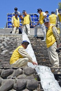 5月11日の鮎漁の解禁を前に、長良川漁業協同組合は16日、「鮎の放流はじめ式」を岐阜市長良の長良川うかいミュージアムで開き、稚鮎200キロを長良川に放流した。