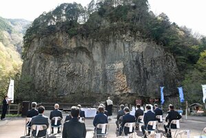 下呂市小坂町落合のがんだて公園で16日、本格的な観光シーズンを前に安全を祈願する「飛騨小坂滝開き」が行われた。同公園一帯は今月10日に指定された御嶽山国定公園に含まれているエリア。関係者約20人が出席し、国定公園指定による観光客や交流人口のさらなる増加に向けて思いを新たにした。