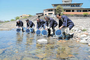 友釣り豊漁願い稚鮎放流 今季初 長良川中央漁協が50キロ 2026年4月17日 05:00 稚鮎を放流する尾藤義昭組合長(右端)や山下清司市長(右から2人目)ら=関市池尻、長良川 長良川中央漁業協同組合は16日、... 残り258文字(全文:275文字) この記事をお読みいただくには「デジタルプラン」または「宅配+デジタルプラン」の会員登録が必要です。無料会員の方はログインしてマイページからコース変更してください。デジタルプランまたは宅配+デジタルプランをご登録中の方はログインしてください。 岐阜新聞デジタル会員に登録すると 無料会員向け記事が読める ニュースレターで最新情報が受け取れる デジタルプラン、宅配+デジタルプランなら Webオリジナルコンテンツが読める 紙面ビューアが読める チケットの先行発売に参加できる お得なクーポンが使える 新規登録ページ ログインページ トップ 岐阜のニュース 友釣り豊漁願い稚鮎放流 今季初 長良川中央漁協が50キロ 関連記事 下呂市小坂町でハナモモの花見頃 遊歩道を彩る 福島正則の書状、関ケ原古戦場記念館で公開 「猪武者」は何に気配り 白川町と東白川村の全路線を廃止へ 濃飛バス、来年3月末 体操 15歳の西山が女子予選首位 全日本選手権開幕 陸上 久保「将来メダルを」 新天地で800メートル強化誓う ★ボブスレーのコーチが退任 おすすめ記事 藤井孝男さん死去 元運輸相、元自民党岐阜県連会長、総裁選にも出馬 高い調整力、信念貫く 岐阜県内のインフラ整備に尽力 藤井孝男さん死去 FC岐阜の礎築く 今西和男さん死去 荘川桜、早くも満開に 高山市の御母衣湖沿い、観光客和ます