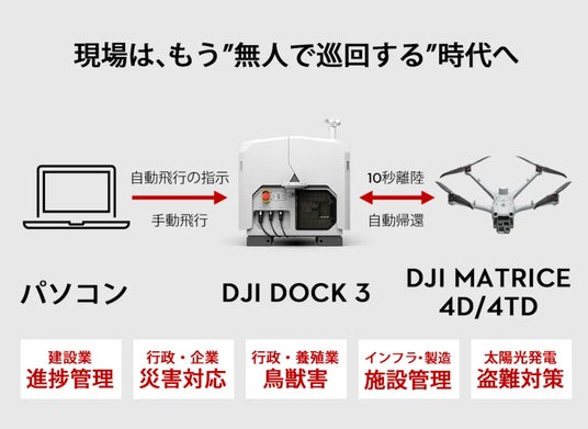 定期巡回、定点撮影、点検、測量、鳥獣害対策まで。DJI FlightHub 2 と DJI Dock 3 の実演で、現場に行かないドローン運用を具体的に確認