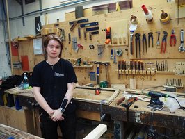 先に10歳でコースが分かれると書いたが、実際にはいろいろなルートで職業学校にたどり着いており、10代の若い学生に交じり20代や30代もいる。たとえば普通高校を卒業して大学受験資格を取ったが、将来プロダクトデザイナーになりたいので先にここで手仕事を学び、その後大学へ行くという学生や、大学で建築学科を出た後に実践的な学びを得るため職業学校に来て、さらにマイスターコースを経て工務店を起業予定という学生などさまざまだ。