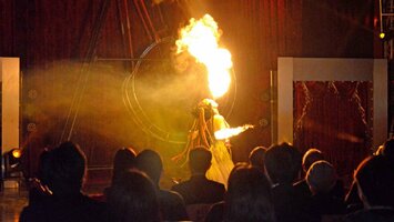 三輪大車輪では団員が地上10メートルの回転する大型装置の上で機敏に縄跳びし、驚きの声が上がった。空中ブランコはダブルスピンや目隠しを加えた難度の高い技を次々と決めた。鋼鉄球体内をバイクで縦横無尽に走り回るパフォーマンスや、ピエロショーもあった。家族、友人と訪れた墨俣小学校4年坂上大月さん(9)は「最高だった。空中ブランコや三輪大車輪は見ていてドキドキ、ハラハラした」と声を弾ませた。