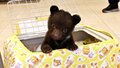高山市奥飛騨温泉郷一重ケ根の奥飛騨クマ牧場で今年1月に生まれたばかりの子グマの笑愛(わかめ)と牧場の職員が、岐阜新聞本社を訪れ、名物企画・子グマとの記念撮影などをアピールし、来場を呼びかけた。