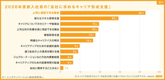 4.会社に求めるキャリア形成支援、「上司に相談できる機会」がトップ。「期待することない」は1.5%