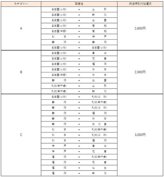 3.燃油特別付加運賃は大人・小児・幼児(座席を使用される場合)ともに同額となります。