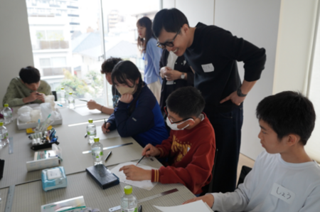 当日は、一般公募で集まった小学5年生から中学3年生までの11名が参加しました。まずCURIOSITYが手がけたラグジュアリーブランドの店舗などの空間デザインやプロダクトについて学んだあと、オフィス内を見学し、クリエイティブな発想が生まれる現場の空気を肌で感じました。制作体験では、スマートフォンのライトを光源として利用するランプシェードづくりに挑戦。和紙や紙コップ、風船といった身近な素材を組み合わせて、試行錯誤しながら自分だけの「光の形」に仕上げていきました。最後は作品にタイトルを付けて、一人ずつコンセプトや工夫した点を発表しました。講師を務めたデザイナーからは、「光だけでなく、そこに生まれる影まで計算されているのが素晴らしい」「自分の感性がしっかりデザインに表現されている」などとの講評がありました。