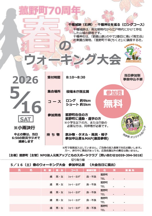2026年5月16日(土)に「春のウォーキング大会」が開催されます。