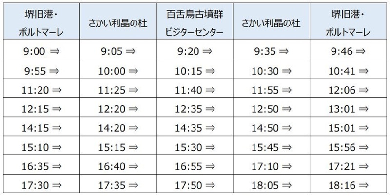 ※臨時の運休日等の情報は、以下の堺観光コンベンション協会ホームページをご確認ください。