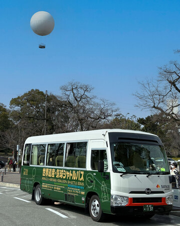 来訪者の方が快適に堺を観光していただくため、「世界遺産エリア」の百舌鳥古墳群ビジターセンター、「環濠エリア」のさかい利晶の杜、「堺ベイエリア」の堺旧港・ポルトマーレを結ぶ「世界遺産・気球シャトルバス」の無料運行を実施しています。
