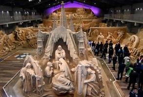 巨大な砂像作品を展示する鳥取市の「砂の美術館」で、スペインをテーマにした企画展が24日に始まる。建築家アントニ・ガウディの未完の傑作、サグラダ・ファミリア教会などを表現した19点の砂像を展示。会期は来年1月3日まで。