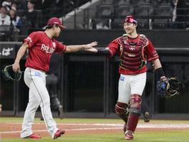 日2―3楽(23日) 楽天、連敗ストップ 2026年4月23日 21:57 6回のピンチを切り抜け、タッチを交わす楽天・柴田(左)と伊藤光=エスコンフィールド 楽天が競り勝ち、連敗を3で止めた。1―1の六回に黒川と伊藤光の適時打で2点を勝ち越した。滝中が六回途中まで2失点とし、継投で逃げ切った。日本ハムの福島は踏ん張りきれず2季ぶりの黒星。打線もあと一本が出なかった。 トップ 全国のニュース 日2―3楽(23日) 関連記事 車衝突で警察官意識不明 イラン機雷20個以上敷設か NY株反発、340ドル高 米軍、インド洋で臨検 NY円、159円台半ば 自民新人が「鹿鳴会」結成 おすすめ記事 【速報】十六銀行の頭取に種村氏 役員人事を発表 2度目の甲子園で初勝利! 浮き彫りになった投手層の差 秋田和哉さん 【ぎふ高校野球 名将流儀】 8月のぎふ長良川花火大会、観覧席に「船」新設 実行委が価格など発表 白川郷に悪質な落書き、観光客のいたずらか 住民が除去「気持ち分かって」