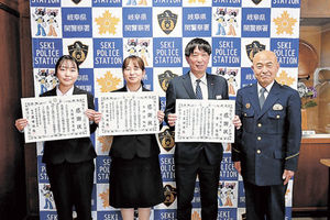 特殊詐欺被害を防ぐ 関信金東支店 職員2人に感謝状 関署 2026年4月24日 05:00 特殊詐欺被害を防いだ、久保田里奈さん(左端)、小川愛加さん(左から2人目)ら=関署 関署は、特殊詐欺被害を防いだとし... 残り337文字(全文:354文字) この記事をお読みいただくには「デジタルプラン」または「宅配+デジタルプラン」の会員登録が必要です。無料会員の方はログインしてマイページからコース変更してください。デジタルプランまたは宅配+デジタルプランをご登録中の方はログインしてください。 岐阜新聞デジタル会員に登録すると 無料会員向け記事が読める ニュースレターで最新情報が受け取れる デジタルプラン、宅配+デジタルプランなら Webオリジナルコンテンツが読める 紙面ビューアが読める チケットの先行発売に参加できる お得なクーポンが使える 新規登録ページ ログインページ トップ 岐阜のニュース 特殊詐欺被害を防ぐ 関信金東支店 職員2人に感謝状 関署 関連記事 尾張徳川家ゆかり、美濃の刀剣 岐阜県博物館50周年特別展が開幕 ボトルキャップを爪切りに 関市と貝印が回収・再生で協定 みきの会、油彩やデッサン90点 関市・三星刃物で「スピンオフ展」 新会長に丹羽さん 関商議所女性会が総会 どうじゃ!滑稽に魔物退治 関で古典神事芸能「童子夜行」 大門町自治会連有終の「特等」 関まつりあんどんみこしコンクール おすすめ記事 岐阜県で今週末どこ行こう?【4月25、26日】 幹線軸の在り方を議論 LRT含む新交通システム 県庁で第2回検討会 自転車のながら運転「ダメ!」 Qちゃんが岐阜県警一日交通部長 岐阜高校で呼びかけ 東濃の焼き物文化を世界へ 多治見市に観光新施設「壱LABO」